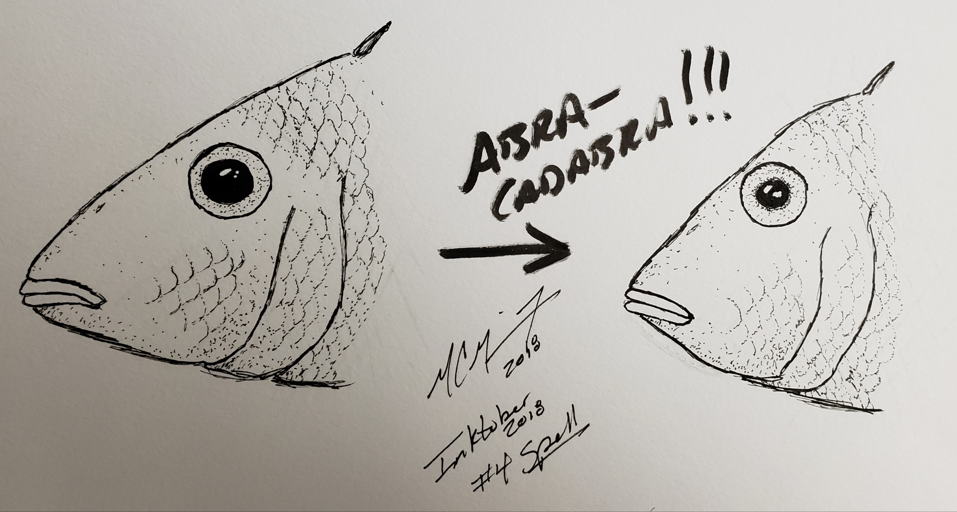 #Inktober2018 Day 4: Spell. Phenotypic plasticity in fishes (or fish, since these are the same species of cichlid!). MC Gilbert 2018