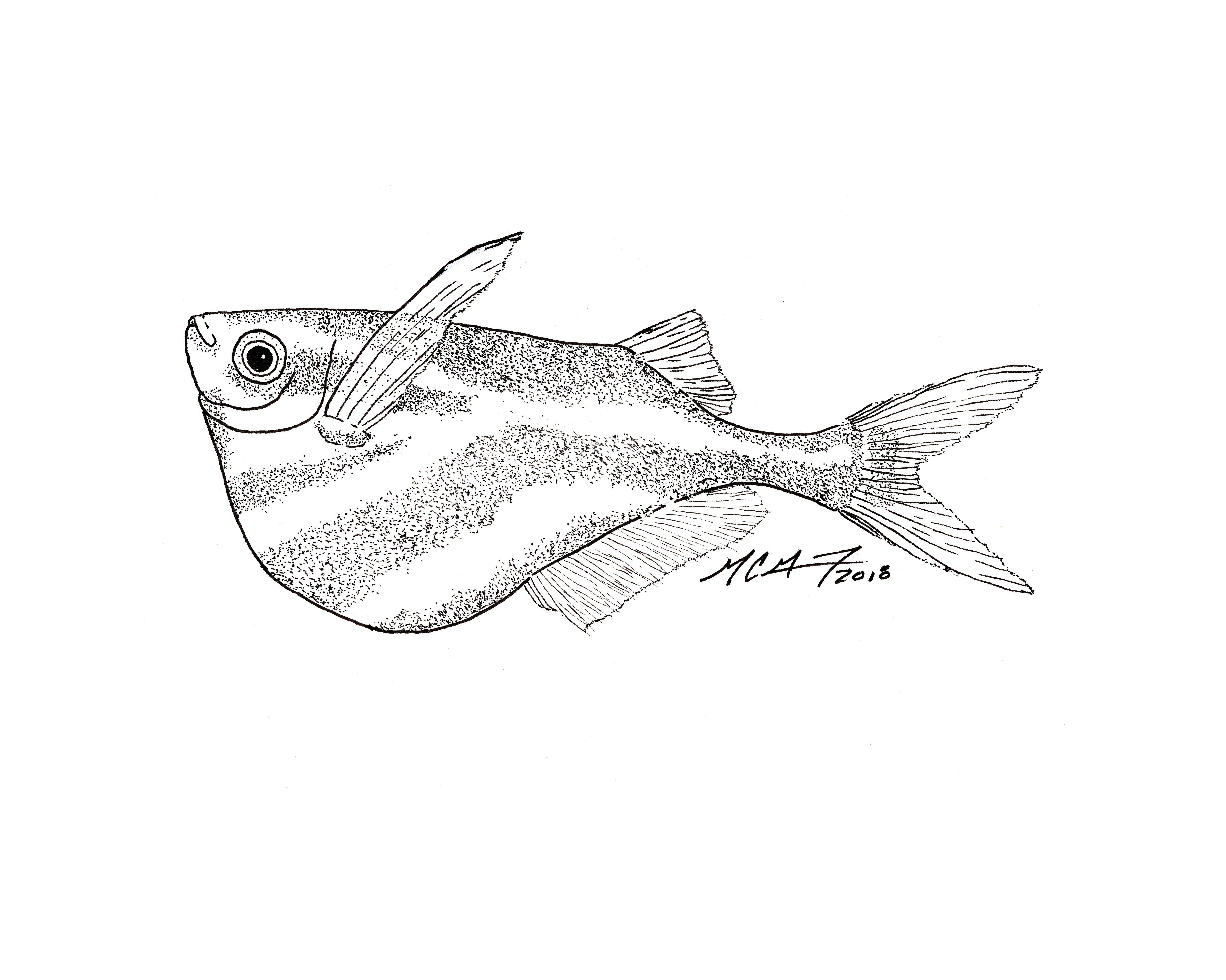 #Inktober Day 24: Chop. MC Gilbert 2018 Day 24 of Inktober 2018: #Chop. Carnegiella strigata, the marbled hatchetfish. MC Gilbert 2018 Share this:TweetShare on Tumblr Click to email a link to a friend (Opens in new window) Email Like Loading...