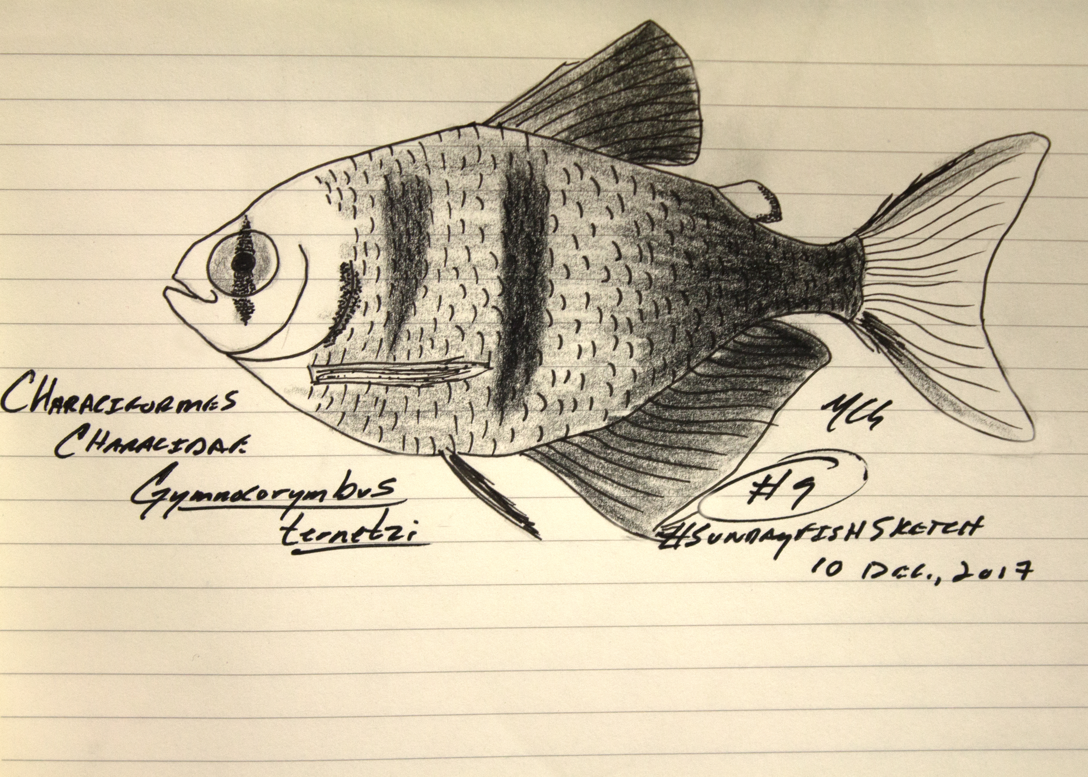Gymnocorymbus ternetzi, the black skirt tetra. #SundayFishSketch, 2017. Gymnocorymbus ternetzi, the black skirt tetra. #SundayFishSketch, 2017. Share this:TweetShare on Tumblr Email a link to a friend (Opens in new window) Email Like Loading...