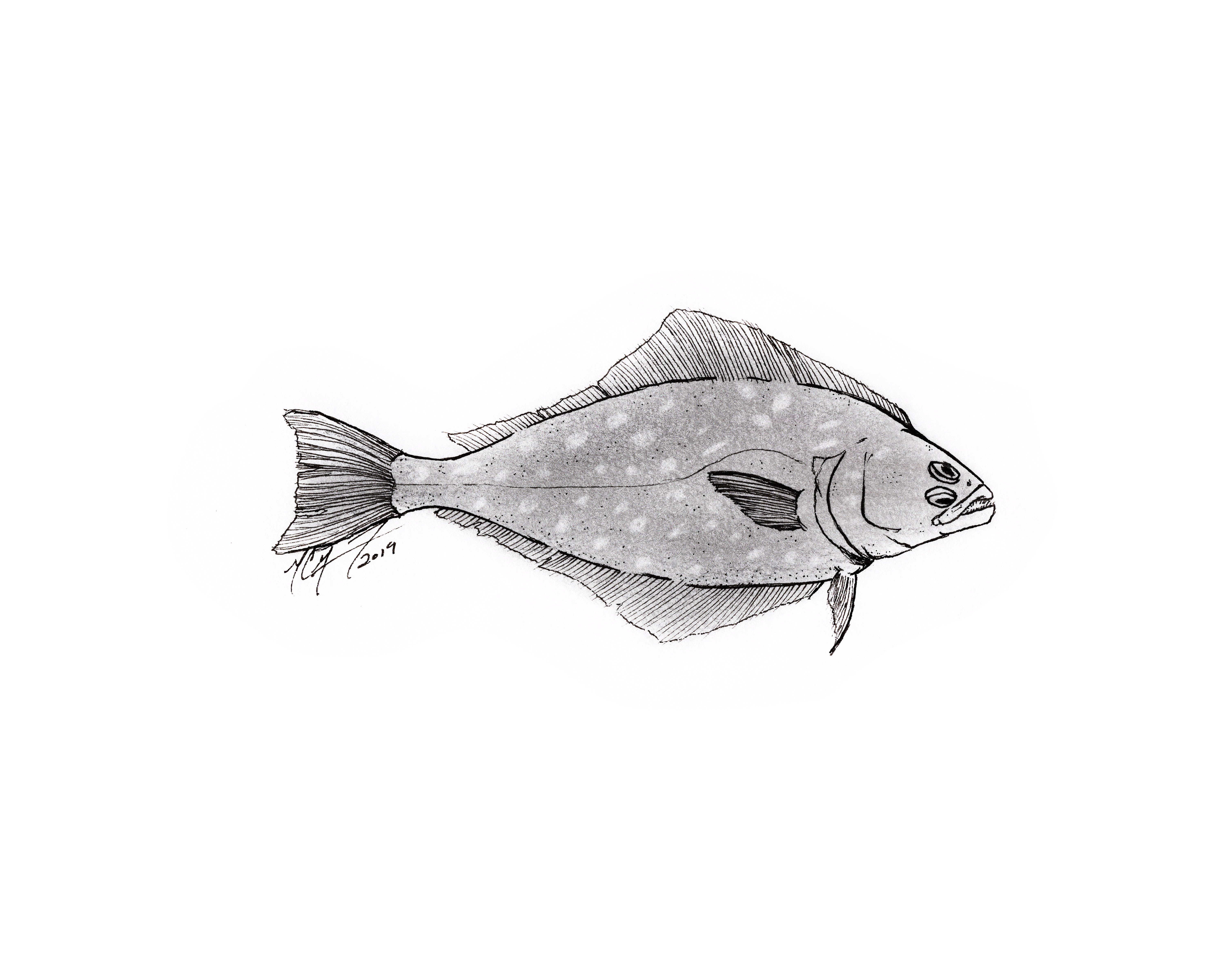Hipoglossus hipoglossus, Atlantic halibut. MC Gilbert 2019 Hipoglossus hipoglossus, Atlantic halibut. #SundayFishSketch. MC Gilbert 2019 Share this:TweetShare on Tumblr Click to email a link to a friend (Opens in new window) Email Like Loading...