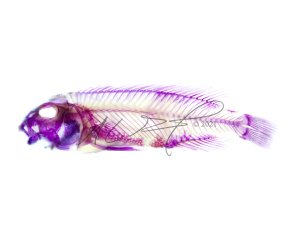 Labeotropheus trewavasae, Trewavas’ cichlid. Cleared and Stained by Patrick Friend. Imaged by MC Gilbert 2021.