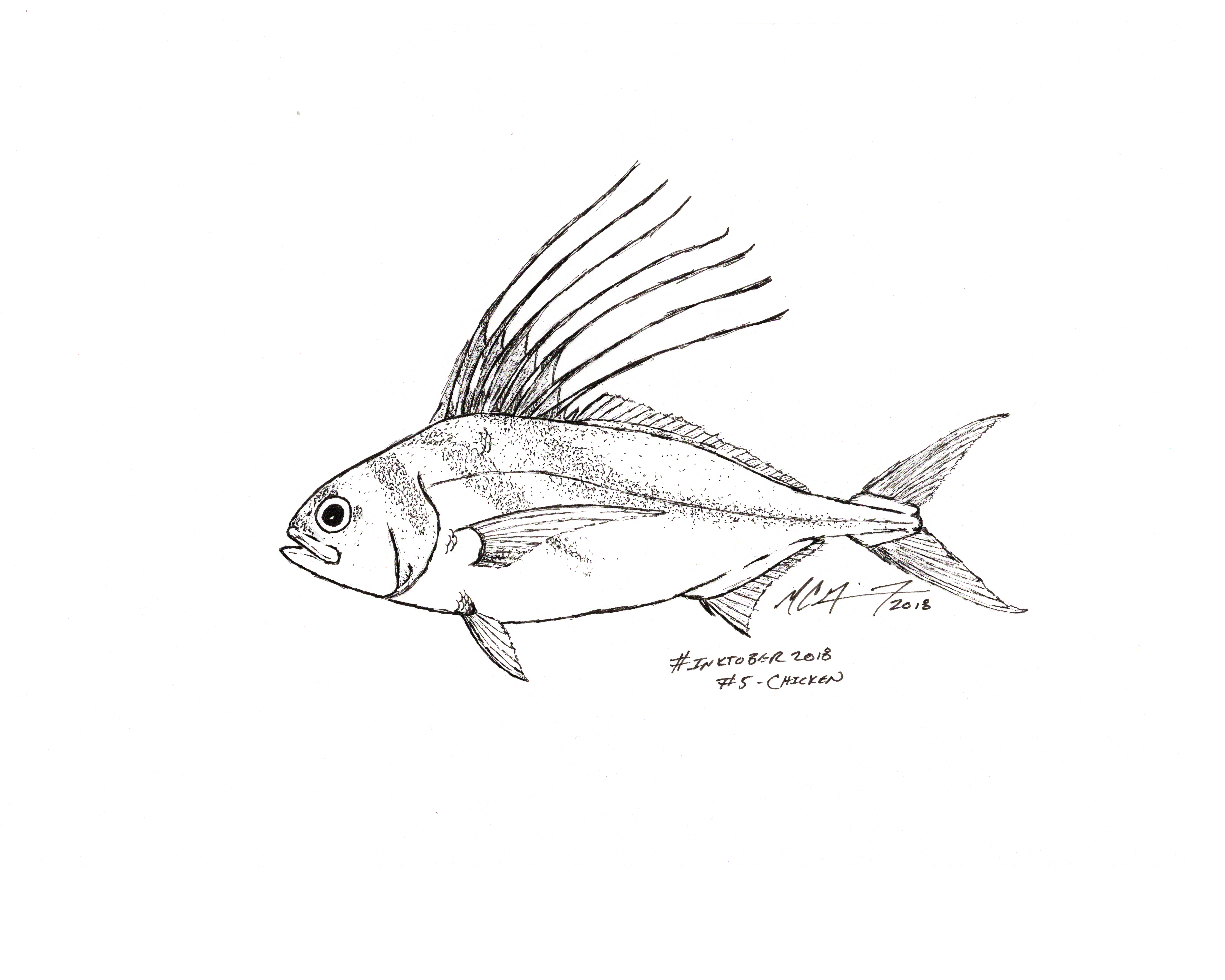 #Inktober2018 Day 5: Chicken. MC Gilbert 2018 #Inktober2018 Day 5: Chicken. The roosterfish Nematistius pectoralis. MC Gilbert 2018 Share this:TweetShare on Tumblr Email a link to a friend (Opens in new window) Email Like Loading...