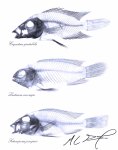 Comparative Anatomy of Three South American Cichlids. From top to bottom – Caquetaia spectabilis, Laetacara curviceps, & Satanoperca jurupari. MC Gilbert 2019