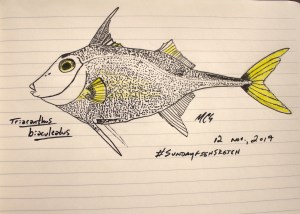 Triacanthus biaculeatus, the short-nose tripod fish, #SundayFishSketch, @Bathysaurus, 2017